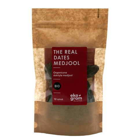 The Medjool variety stands out from other dried fruits. These fruits are large, soft, and moist inside. They are neither hard nor dry, and their texture is reminiscent of delicate "fudge." Ekogram dates contain a pit, which preserves their natural shape and full flavor. This is a 100% natural product, with no added glucose syrup or preservatives.