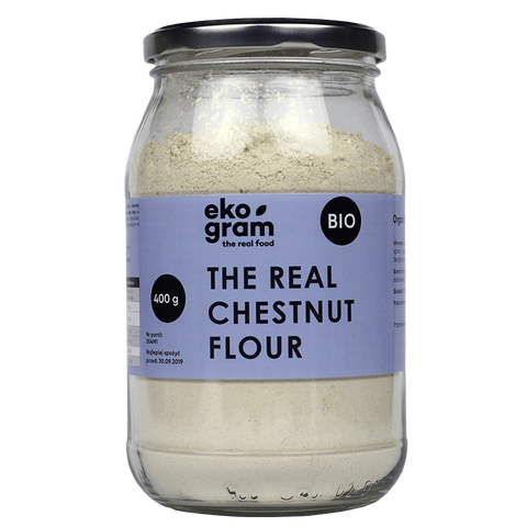 Organic chestnut flour is a naturally gluten-free and easily digestible flour. It does not contain any additives, and it consists only of edible chestnuts from certified organic farming. It is characterized by a delicate, sweet taste. Chestnut flour is high in starch and, at the same time, low in fat. Chestnut flour has one more interesting feature, namely it contains sugar, which is slowly absorbed by our body. Therefore, products based on chestnut flour should be of particular interest to physically active people and people who work mentally.