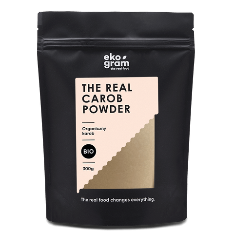 Proszek z ekologicznie uprawianych owoców drzewa karobowego, otrzymuje się przez zmielenie suszonych na słońcu, a następnie podprażonych owoców, pozbawionych nasion. Karob ekologiczny, jest produktem w 100% naturalnym, nie zawierającym żadnych konserwantów, sztucznych barwników czy nawet cukru. W smaku i z zapachu zbliżony do czekolady, ale nie zawiera on kofeiny, teobrominy czy kwasu szczawianowego (który zawiera np. kakao).